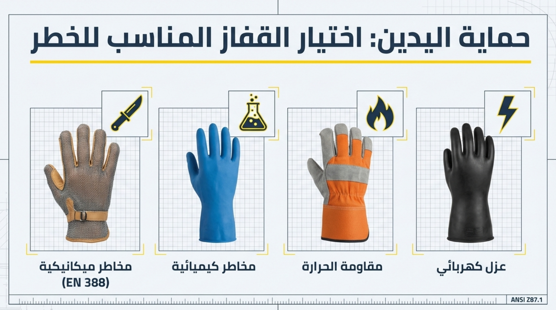 - ANSI Z87.1: الخاص بنظارات ووسائل حماية العين.