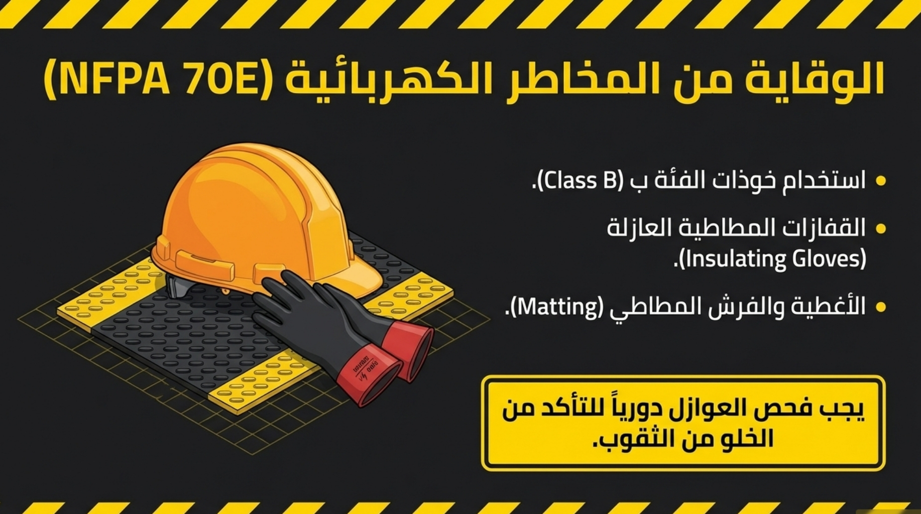 - الأكواد الدولية: (NFPA 70E) فيما يخص مهمات الوقاية من المخاطر الكهربائية.