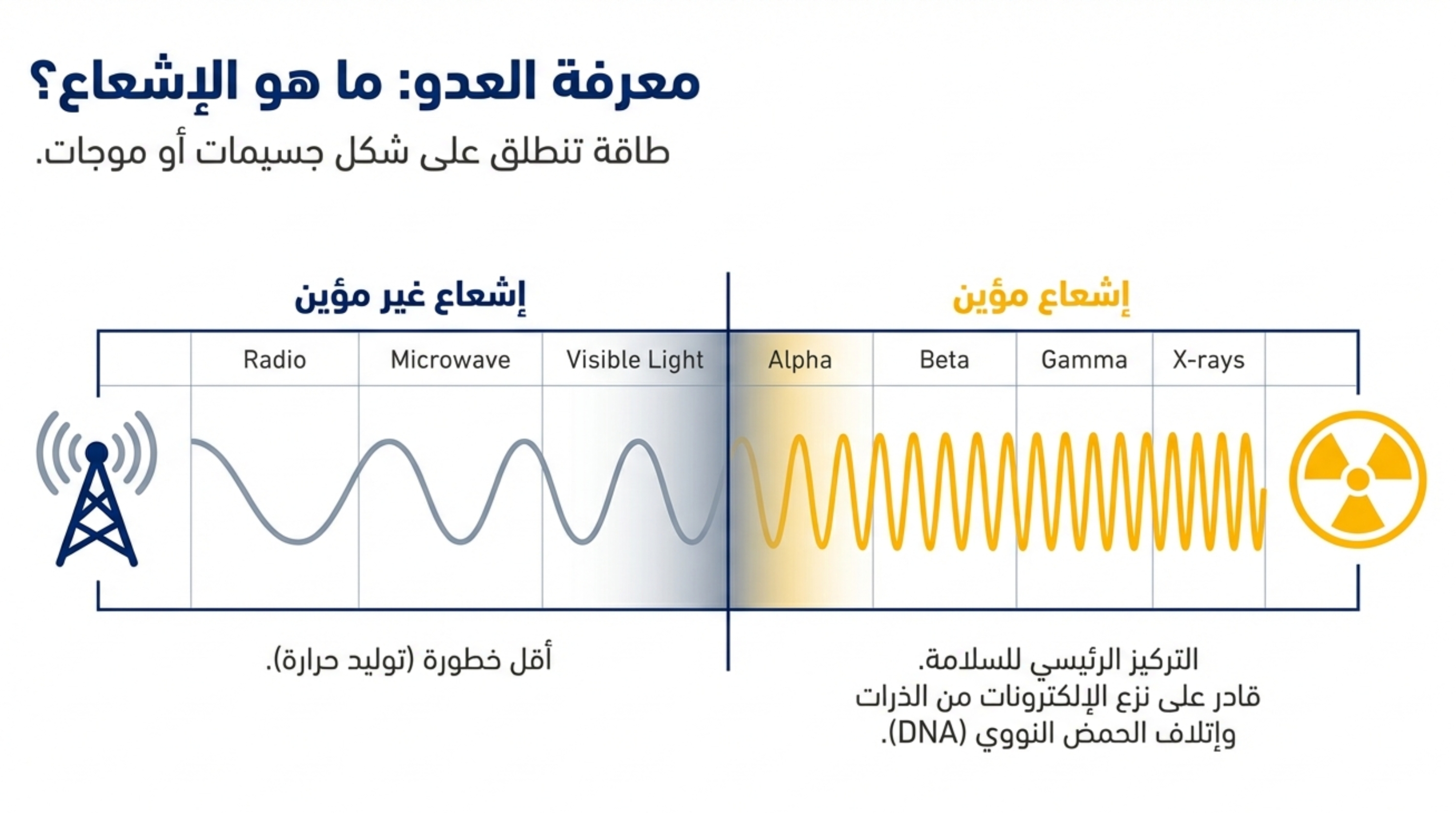 يعد الإشعاع والمواد المشعة جزءاً لا يتجزأ من العلم الحديث، خاصة في مجالات التشخيص والعلاج الطبي والبحث العلمي. ومع تعدد الفوائد، تبرز مخاطر محتملة تتفاوت في حجمها بناءً على نوع الإشعاع وطريقة التعامل معه، مما يفرض اتباع بروتوكولات سلامة صارمة.