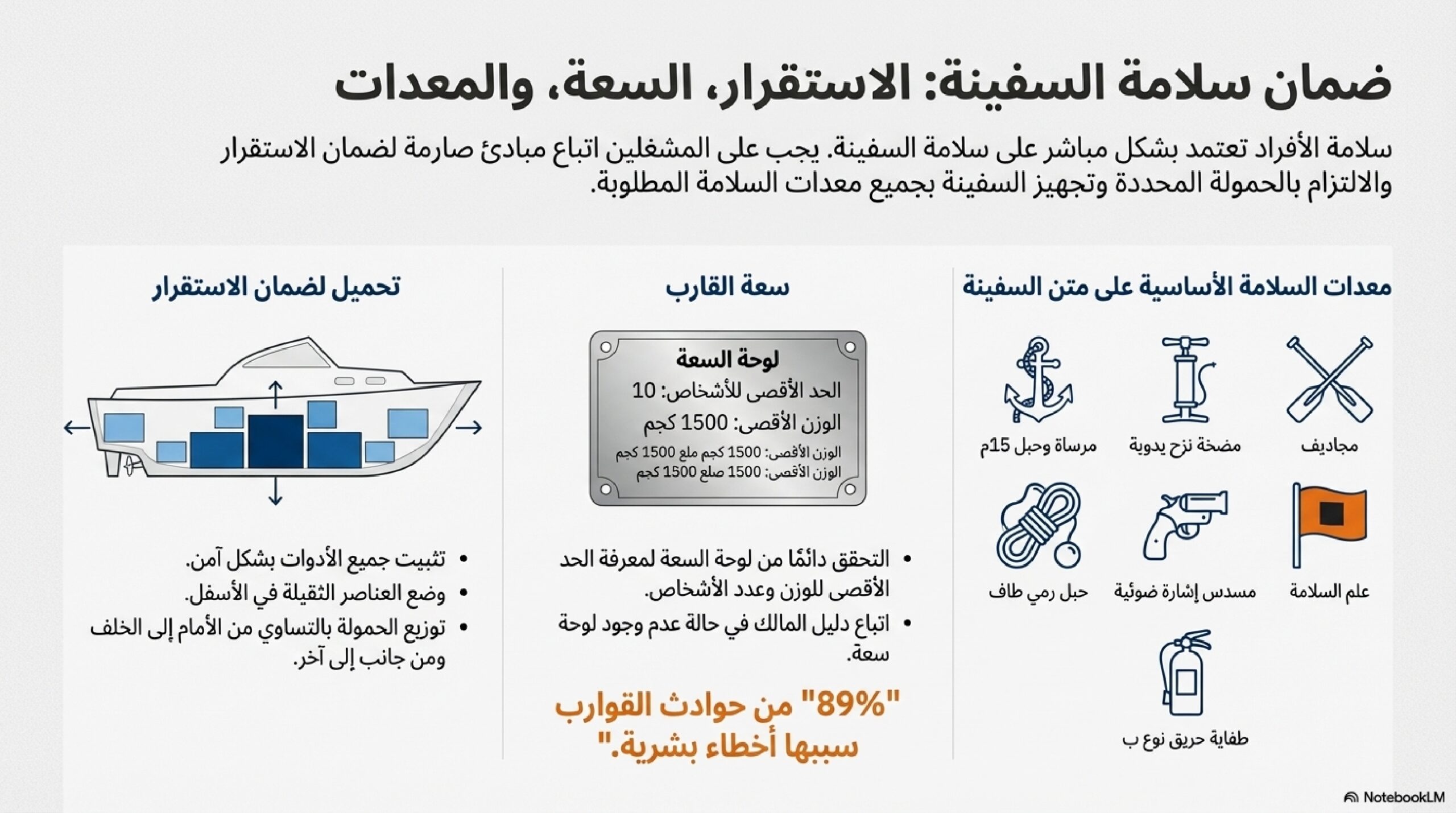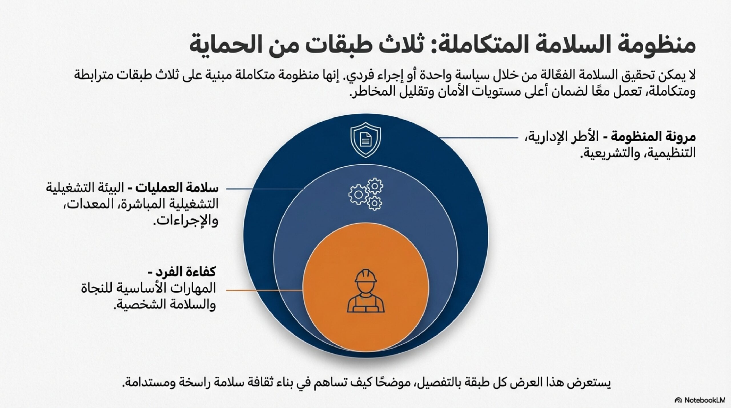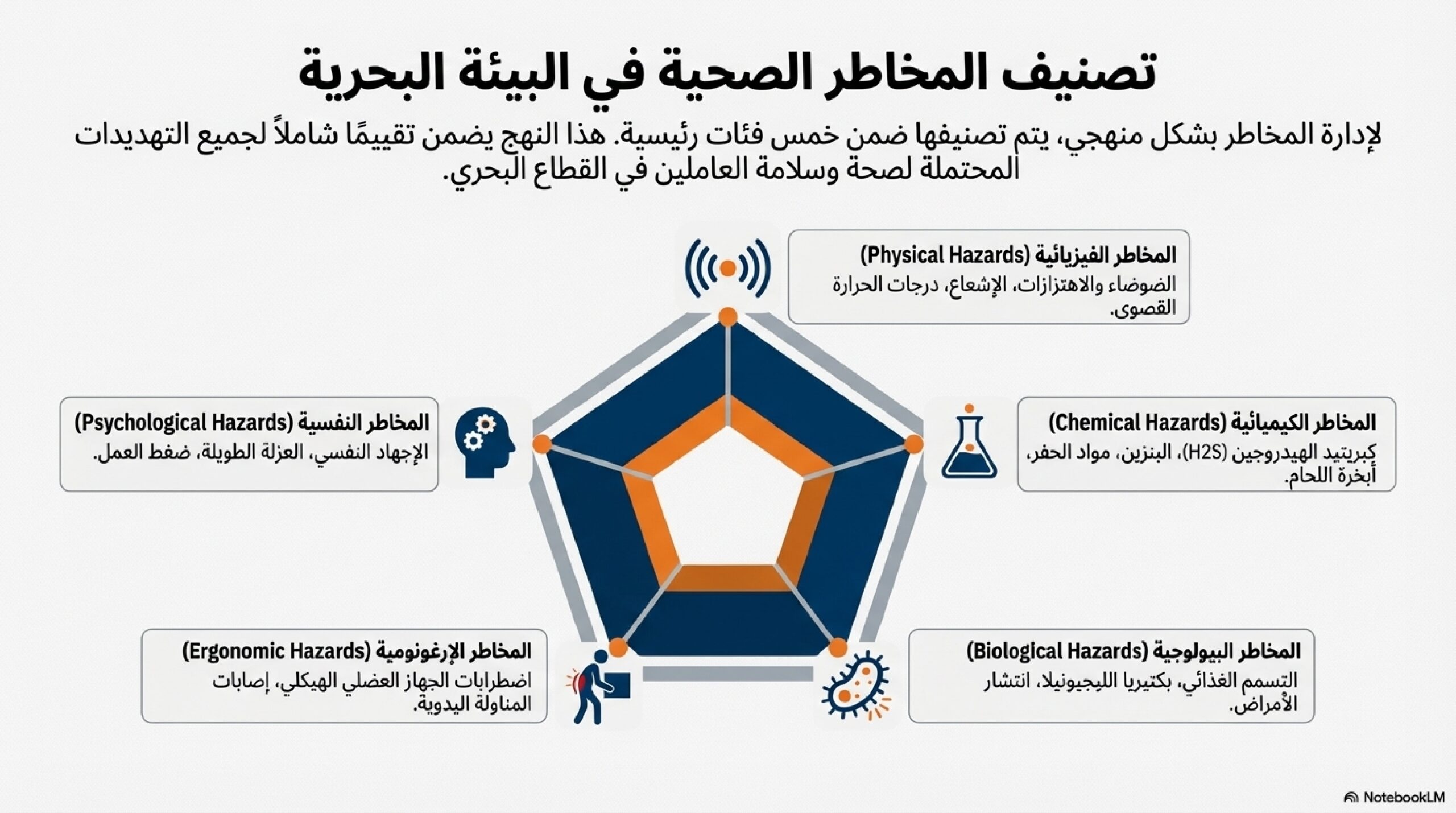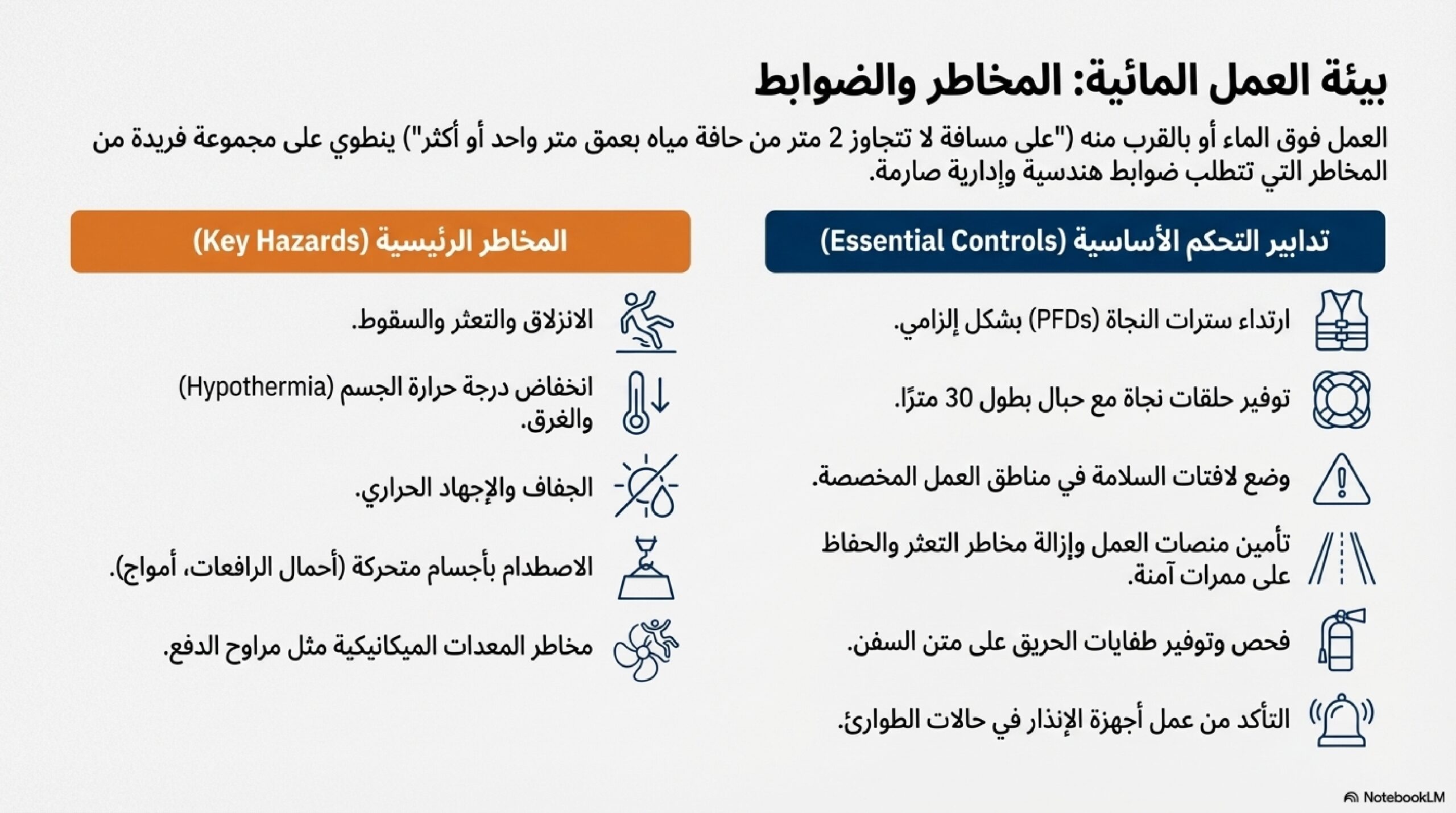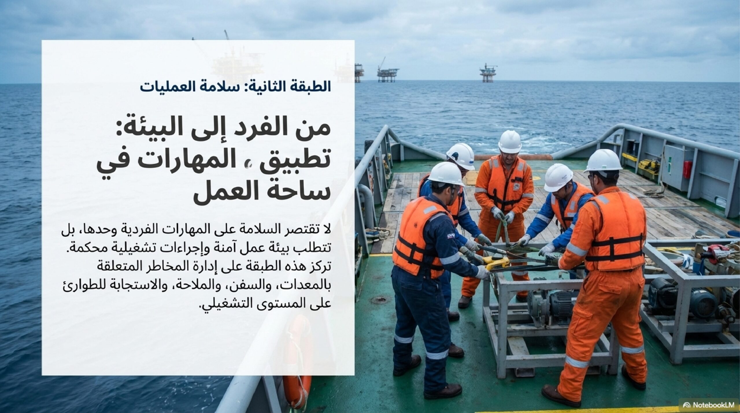 كما نشير إلى أهمية التدريب لتجنب الأخطاء البشرية في العمليات، وتفصيل متطلبات الصحة المهنية، مثل التعامل الآمن مع الأوزان والألوان التحذيرية.