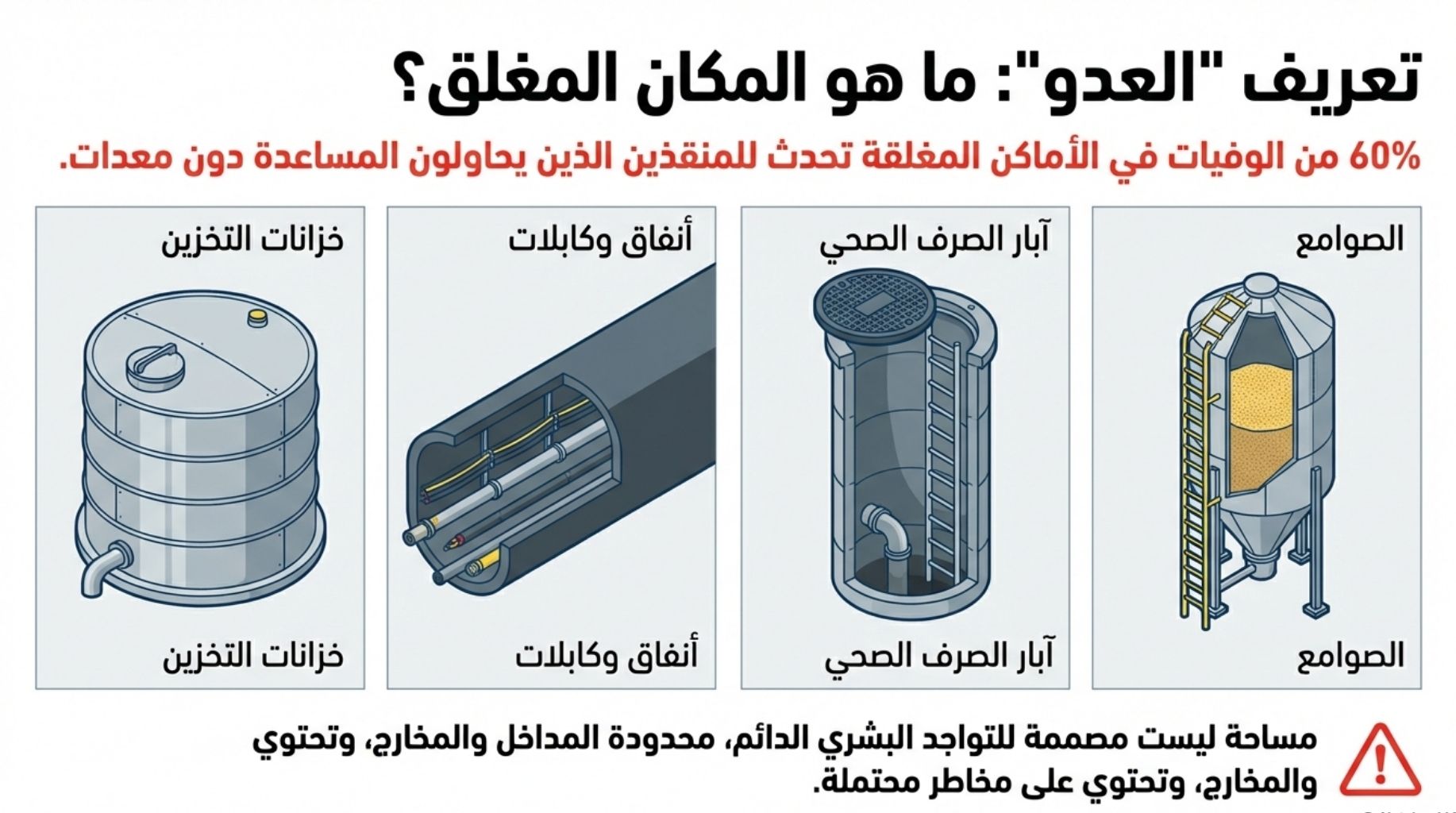 #السلامة_والصحة_المهنية #الأماكن_المغلقة #مخاطر_العمل #مهمات_الوقاية #إدارة_المخاطر #OccupationalSafety #HSE_Professional #ConfinedSpaceSafety
