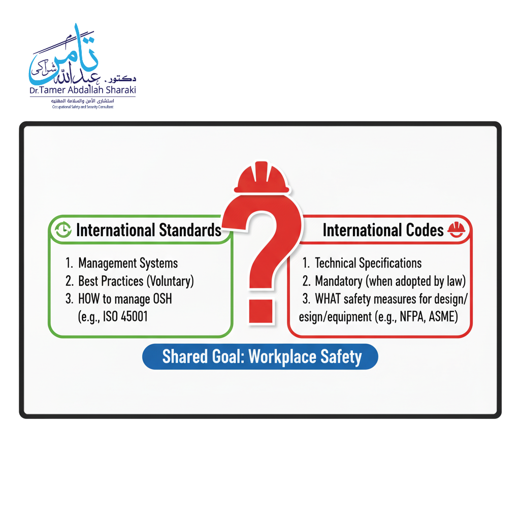 Read Moreالفرق بين المواصفات الدولية والأكواد الدولية للسلامة والصحة المهنية في مجال السلامة والصحة المهنية (OSH)، غالباً ما تُستخدم مصطلحات...