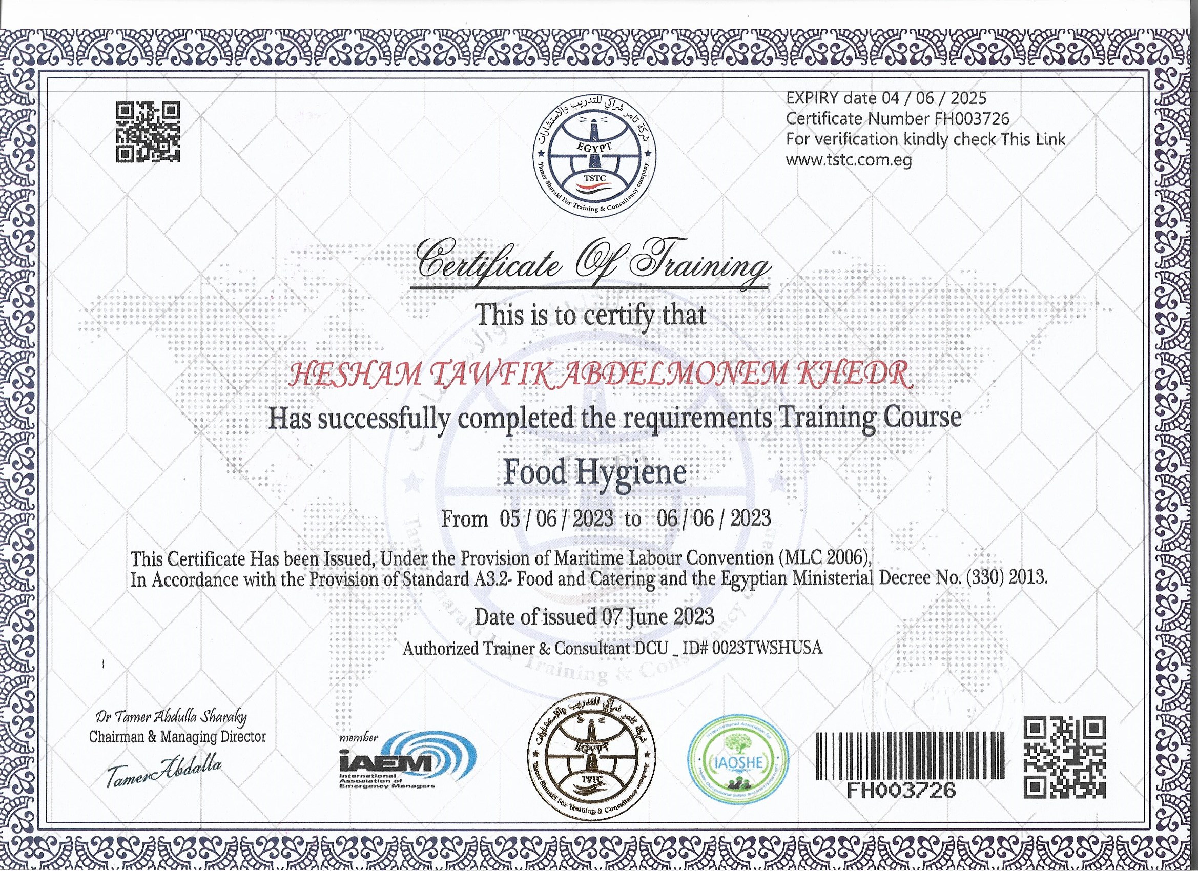HESHAM TAWFIK ABDELMONEM KHEDR