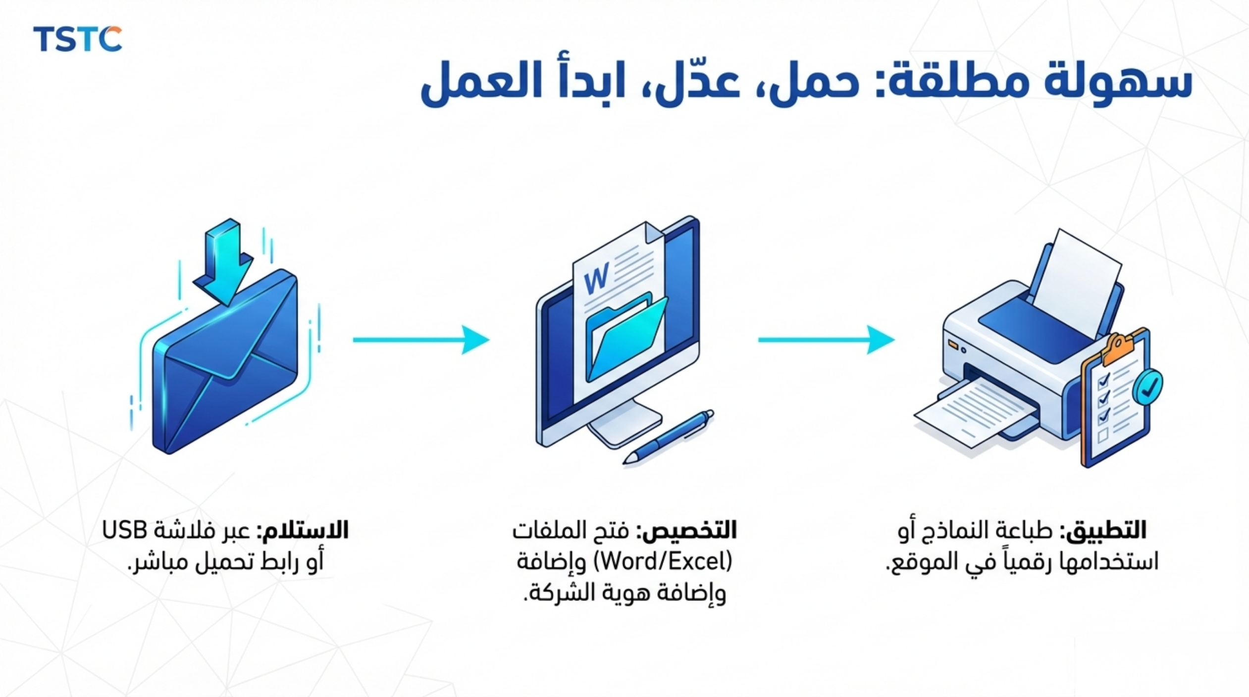 نقدم لك “الحزمة البنية التحتية المهنية” من إعداد (TSTC). نظام شامل، منظم، وجاهز للتشغيل للرصيد، مُجمع كلياً على فلاشه واحد ( USB ) .