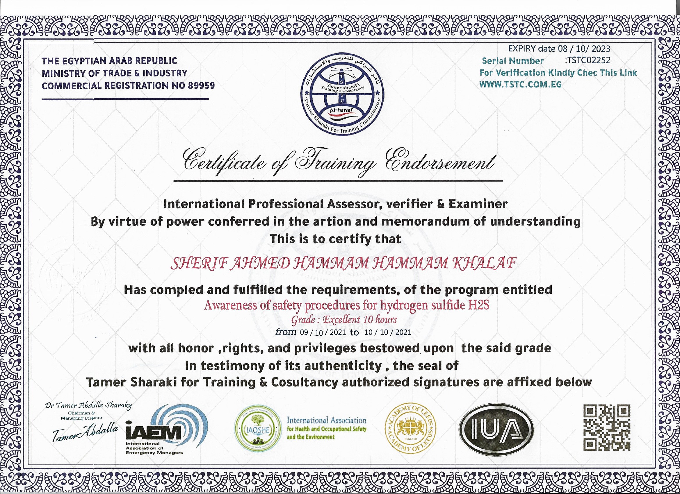 SHERIF AHMED HAMMAM HAMMAM KHALAF